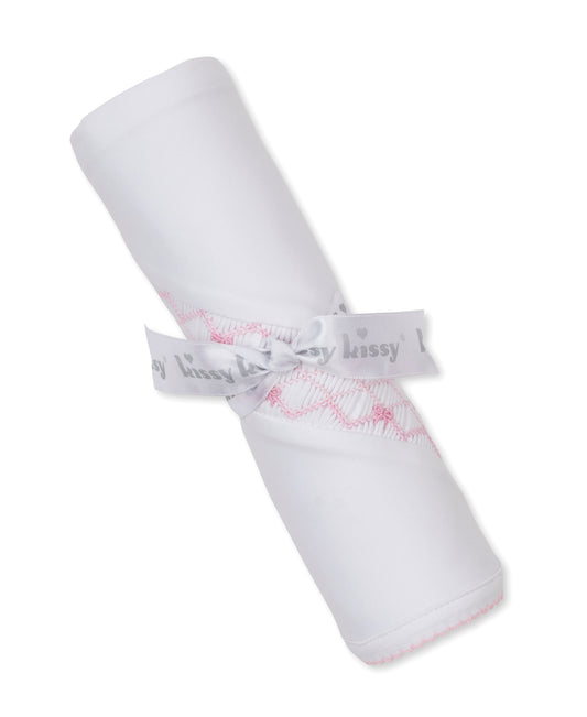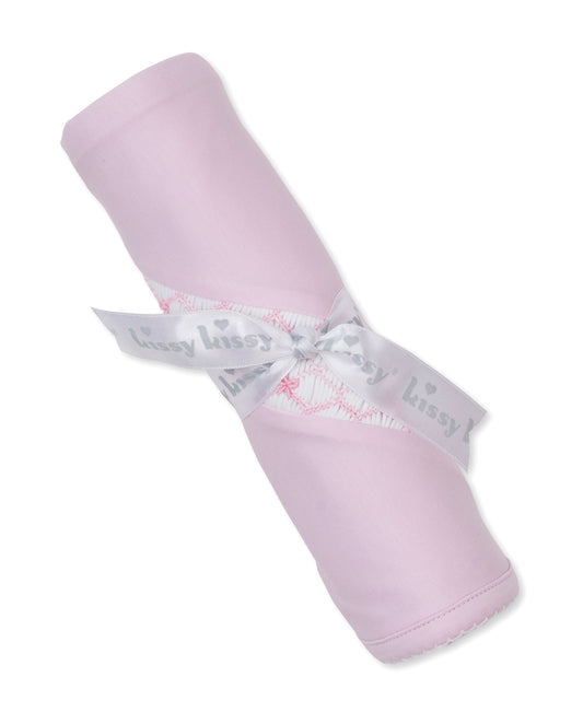 Hand Embroidered Smocked Bows Pink Blanket