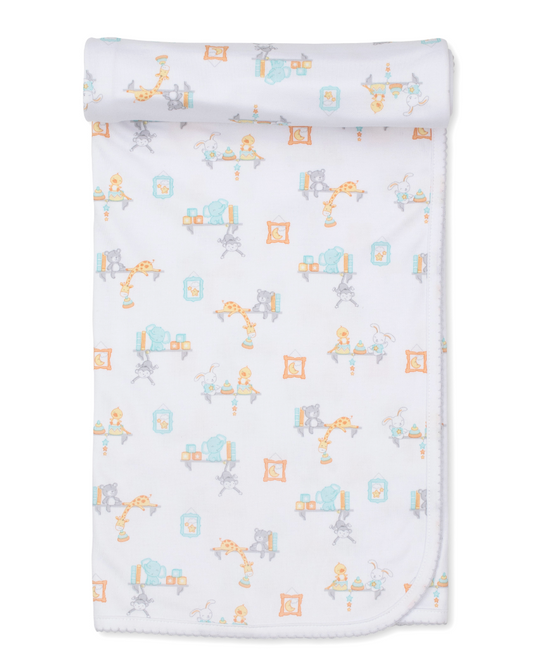 Elephant, Tiger, Giraffe Blanket Blue Stripe