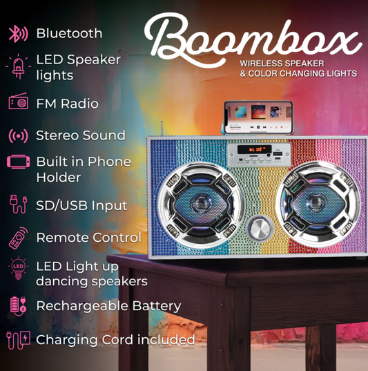 Rainbow Bling Retro Bluetooth Boombox