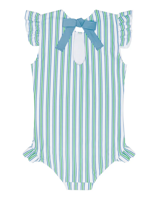 Tamarin Stripe Ruffle Cap Sleeve Rashguard One Piece