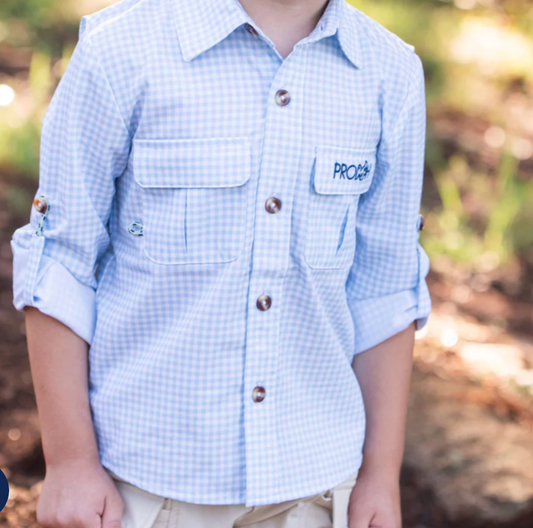 Clear Sky Gingham Long Sleeve Founders Fishing Shirt