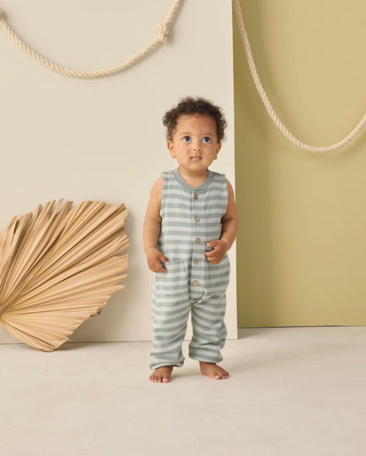 Sea Green Stripe Summer Waffle Jumpsuit