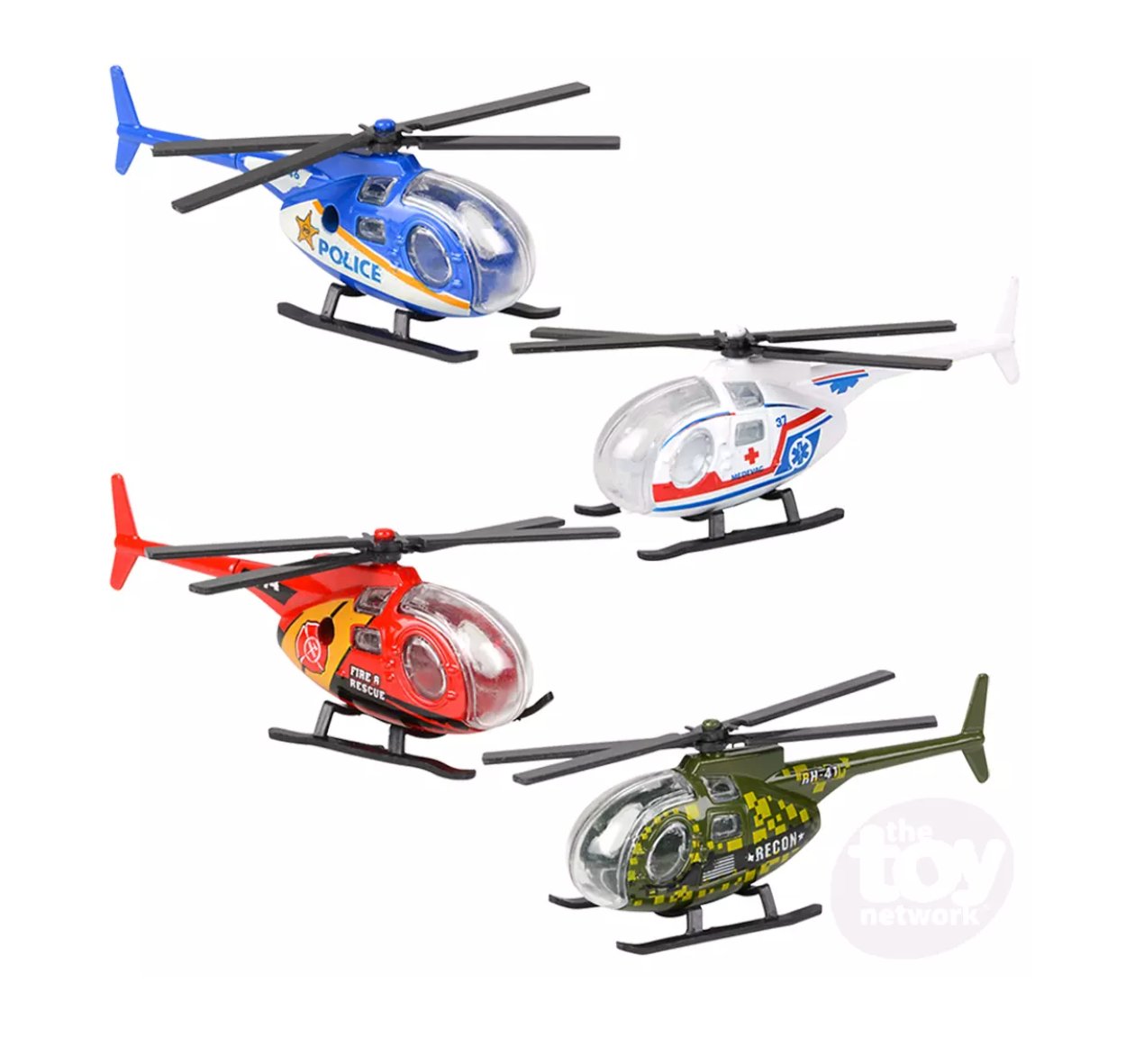 Offered in four different colors, these helicopters are eye-catching and will be a great addition