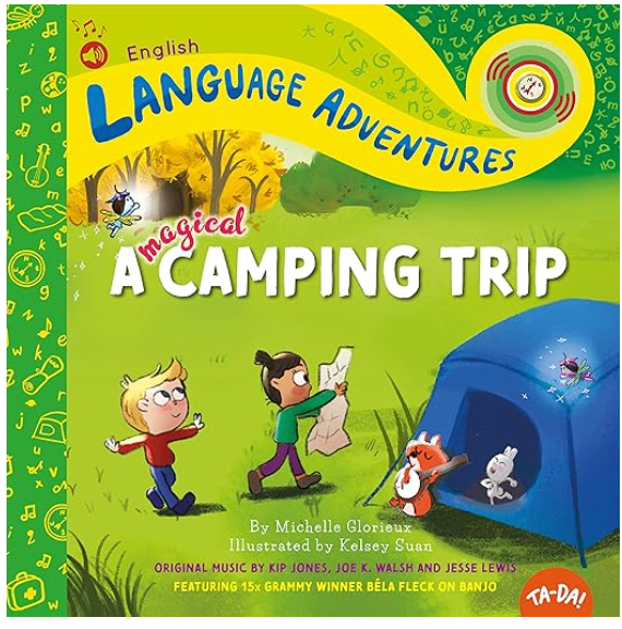 With just the touch of a finger on paper, this immersive, interactive talking book comes alive with sounds: the crackle of a campfire, native speakers pronouncing 12 camping-themed vocabulary words in English, and 12 original tunes featuring 15-time Grammy winner and banjo legend Béla Fleck. This safety-tested board book provides screen-free early language learning for babies, toddlers, and preschoolers, the optimal age for language acquisition