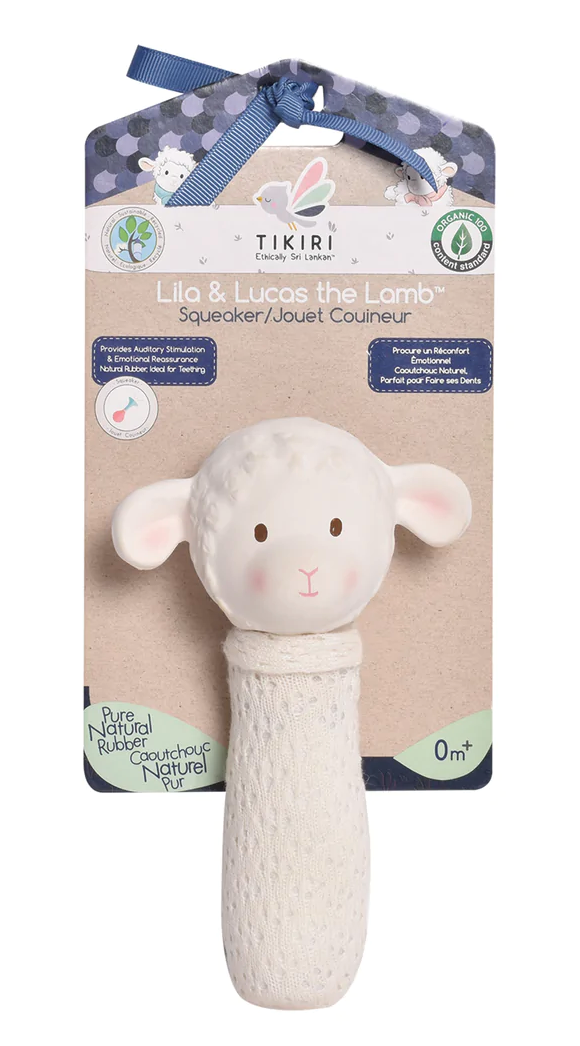 Bahbah the Lamb Squeaker With Natural Rubber Teether Head