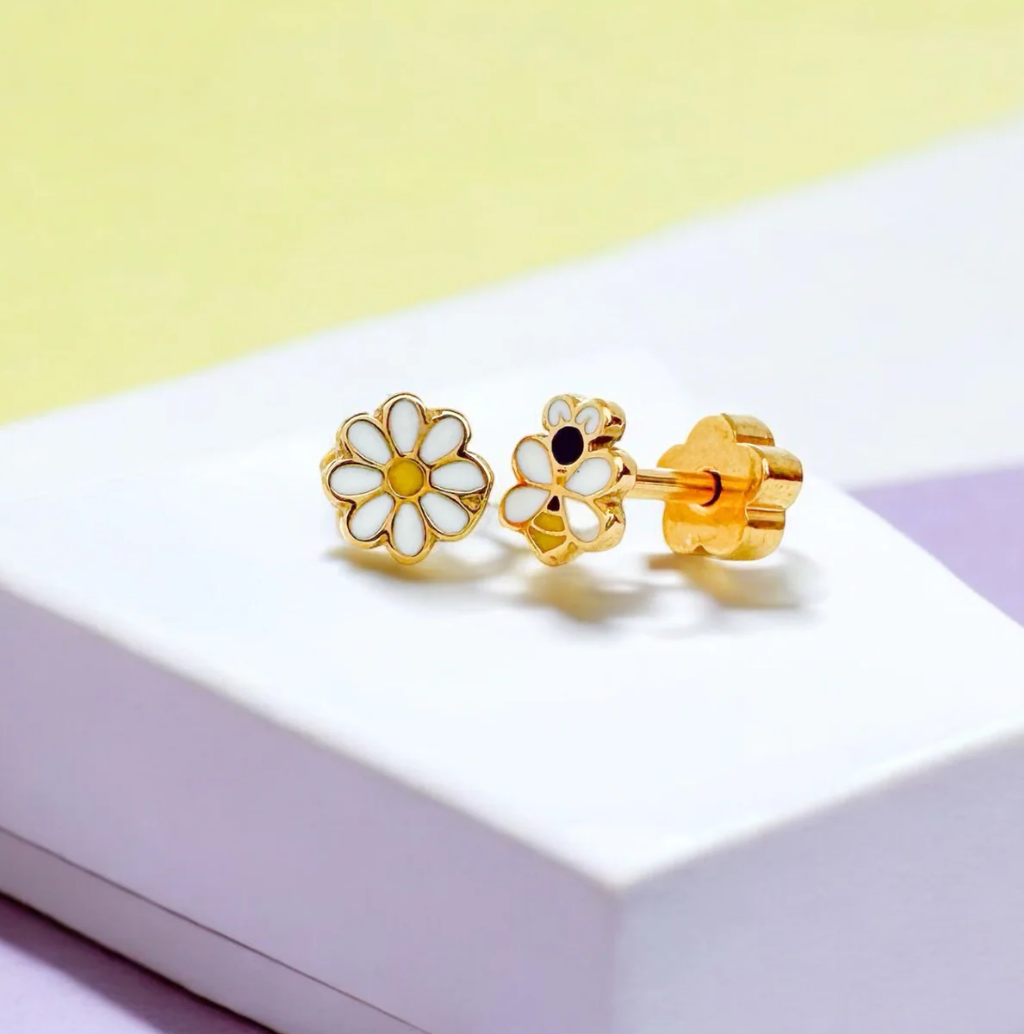 Bring a pop of style with our Tiny Stud Earrings - featuring the cutest complimentary set: a BEE & DAISY! Made with hypoallergenic stainless steel posts, this sweet collection will keep their little ears happy and stylish. Perfect for any occasion, these earrings will add a playful touch to their outfit. Buzzing with charm! Perfect for kids of all ages, including kids at heart!