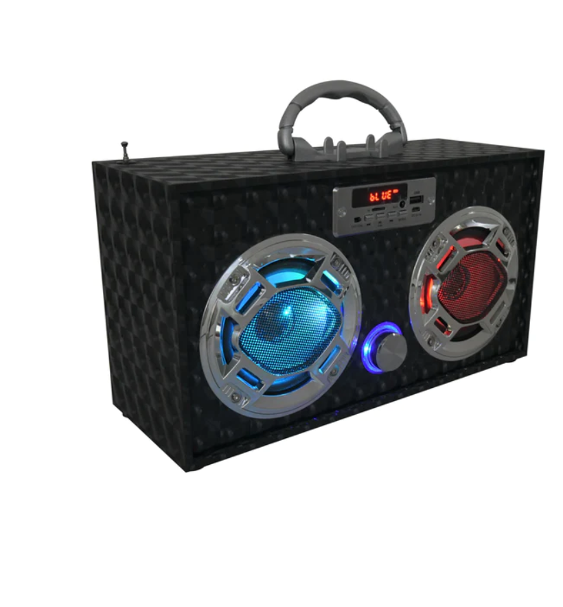 Listen to your favorite songs in style with this mini boombox! With LED speaker lights, this boombox is perfect for any occasion that calls for some fun music and lights.