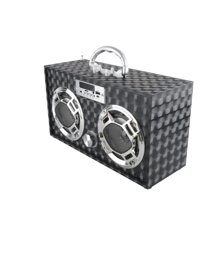 The mini boombox boasts powerful stereo sound features, a carrying handle, retractable antenna, and full volume control. It’s convenient to carry around and use.