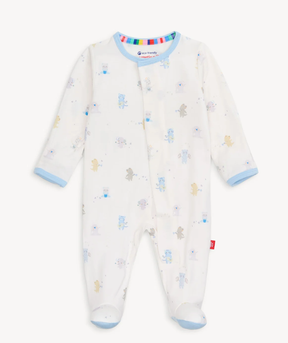 Our modal Magnetic Footie, designed with magnetic closures, is a quick and quiet lifesaver for all-day and middle-of-the-night diaper changes—that's up to 12 times a day (!). Made from sustainable modal, it's a silky-soft and temperature-regulating sleeper to keep your little one comfy from head to toe.