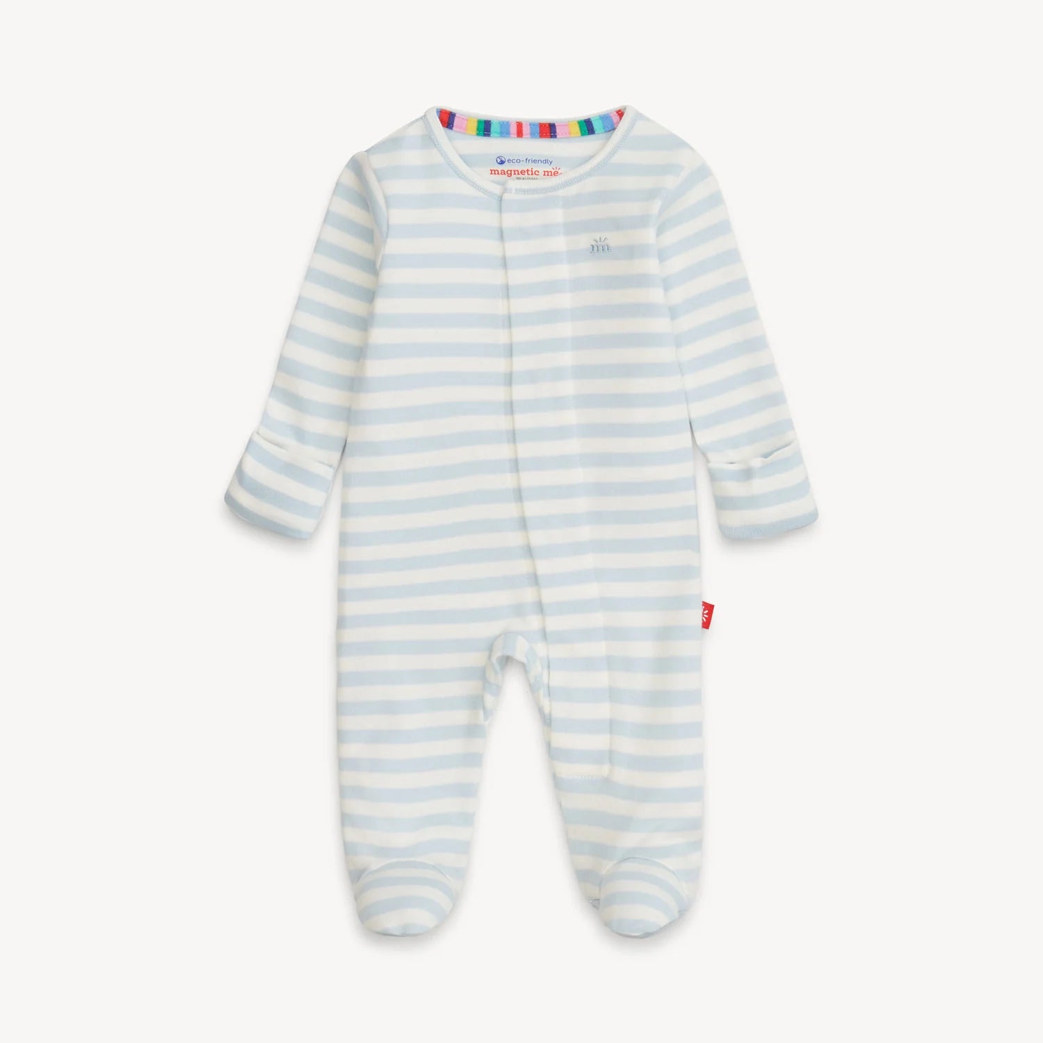 Our organic cotton Magnetic Footie, designed with magnetic closures, is a quick and quiet lifesaver for all-day and middle-of-the-night diaper changes—that's up to 12 times a day (!). Made from GOTS certified organic cotton, this sleeper is so soft, breathable, and gentle on sensitive skin.