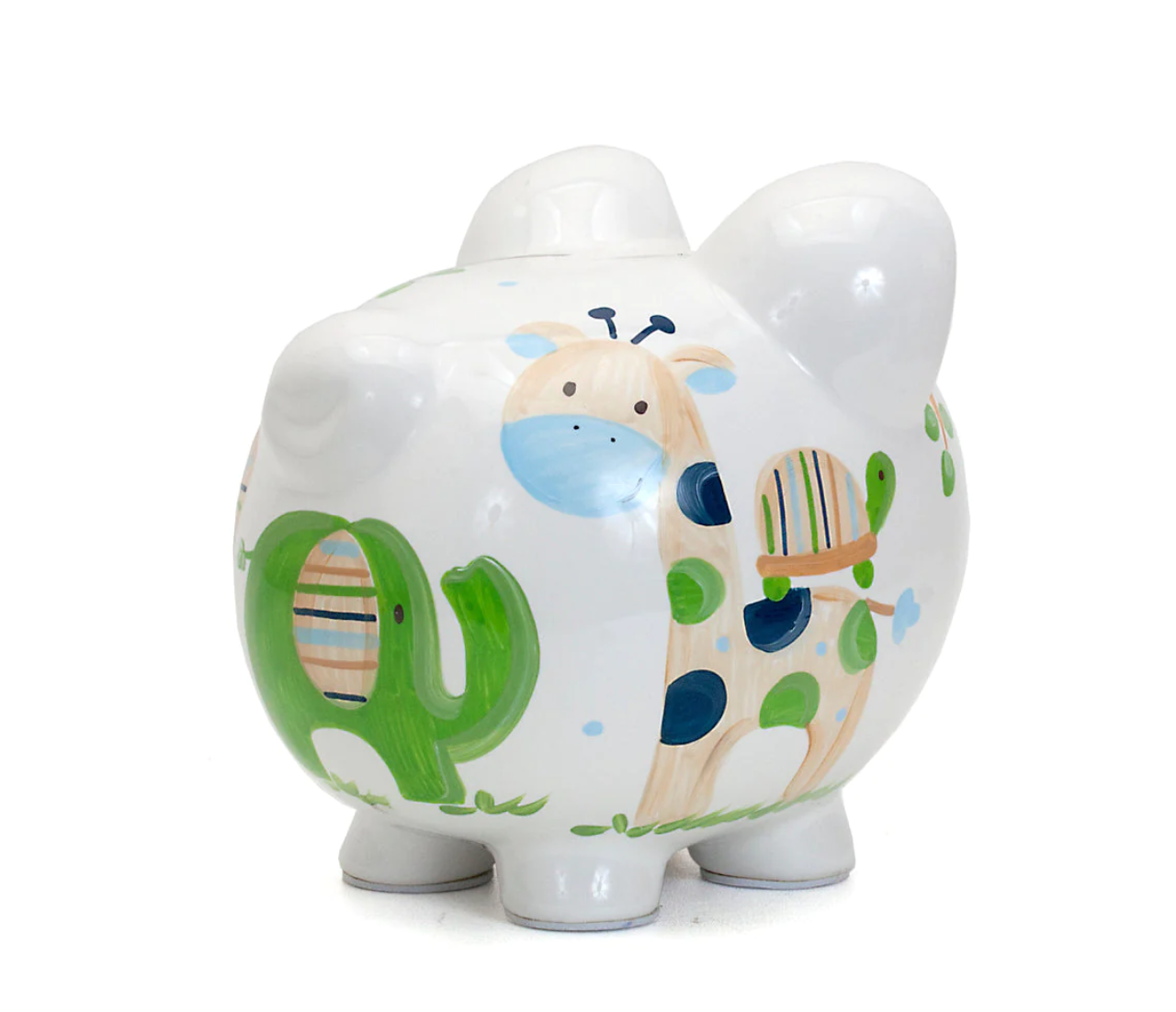All of our banks are made from only the highest quality ceramic, known as dolomite, for increased durability. They feature a base that is deep glazed, insuring that this essential color doesn't wear off with repeated handling. To finish things off, we add a shiny finishing that keeps the colors of all of the underlying components locked in place, meaning that you never have to worry about compromising the quality of the bank with repeated use.