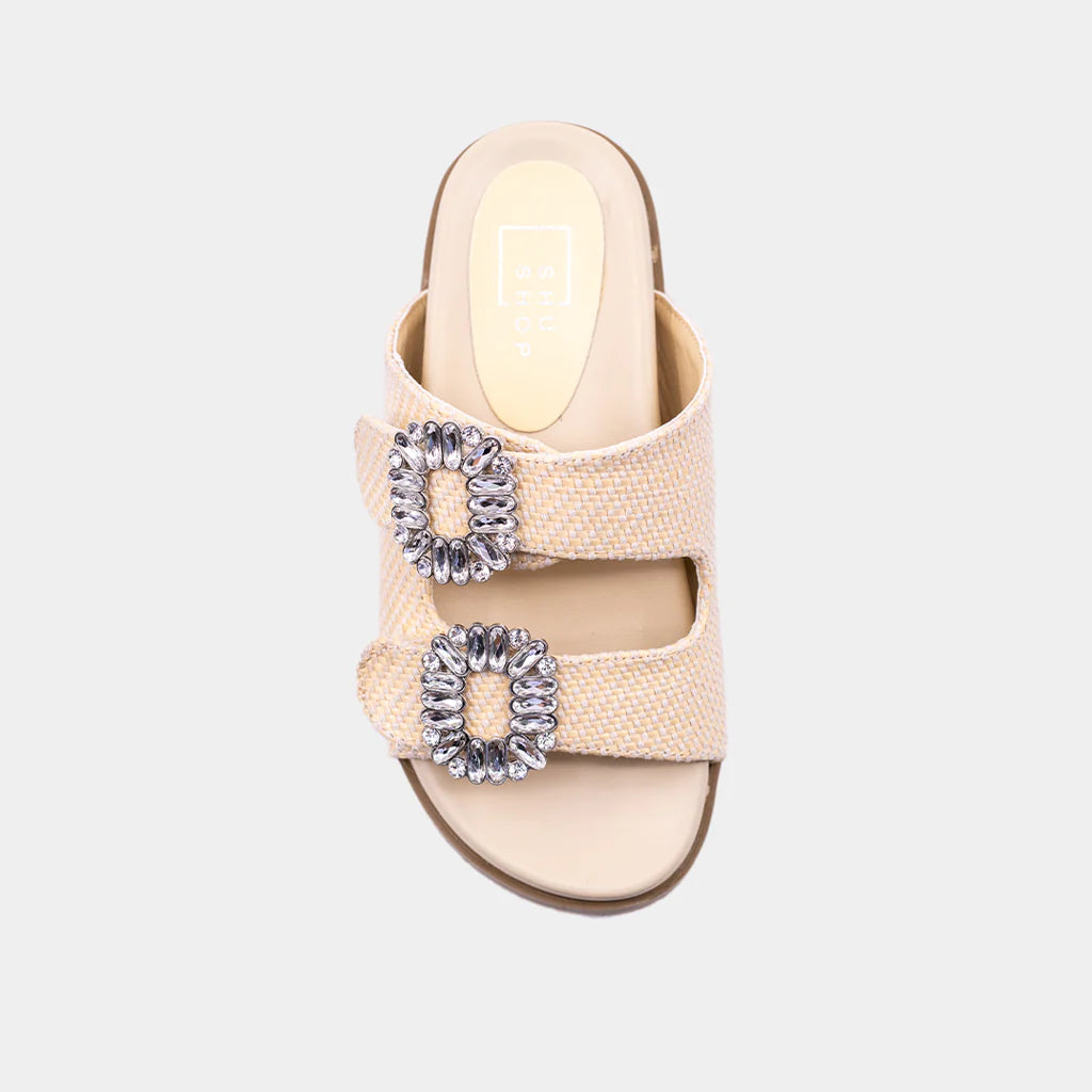Twinkle toes just got an upgrade! The BRIDGET MINI in Bone Woven pairs an elegant woven texture with dazzling crystal-embellished buckles for a look that's as stylish as it is playful. Designed for little fashionistas, this comfy sandal features a cushioned sole for all-day wear. Plus, it's part of our Mommy & Me collectionso you can match in style!