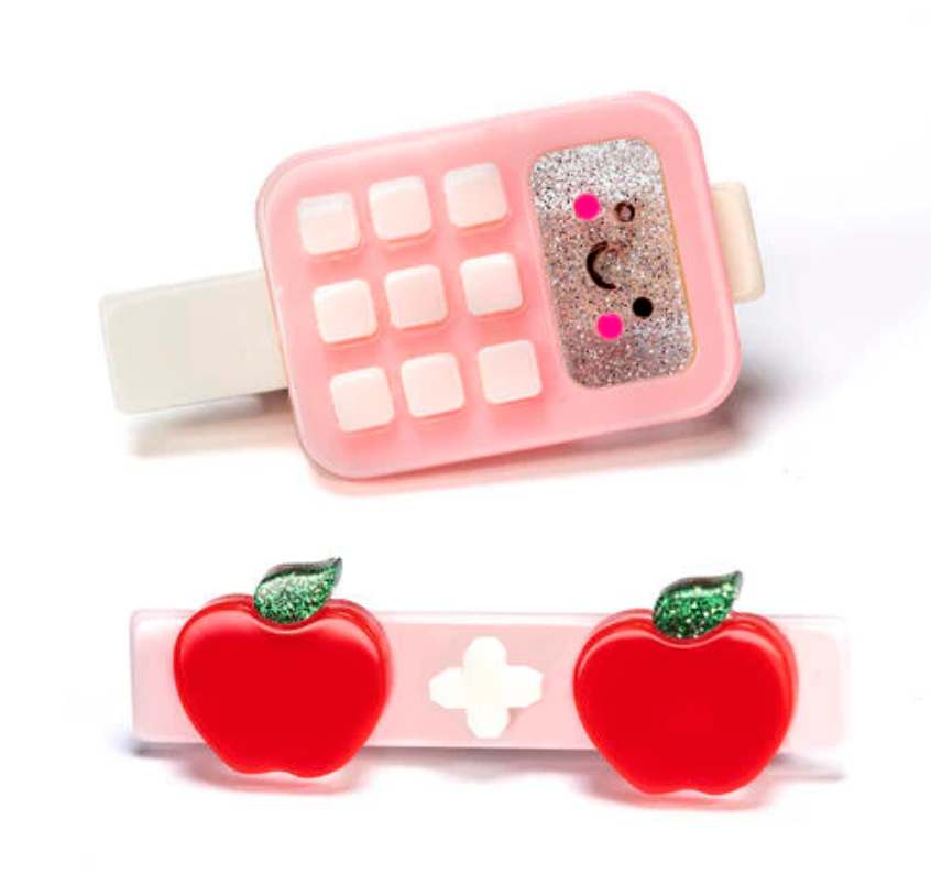 Add a touch of sweetness and smarts to your little one's hairstyle with our Calculator Light Pink & Apples Hair Clip! This charming clip features a delightful combination of light pink hues and an adorable apple design, perfect for adding a pop of color to any outfit. Perfect for school days, playdates, or simply adding a dash of cuteness to everyday wear, this clip is sure to become a favorite in your child's accessory collection. Let their style shine with this delightful clip that celebrates learning and fun!