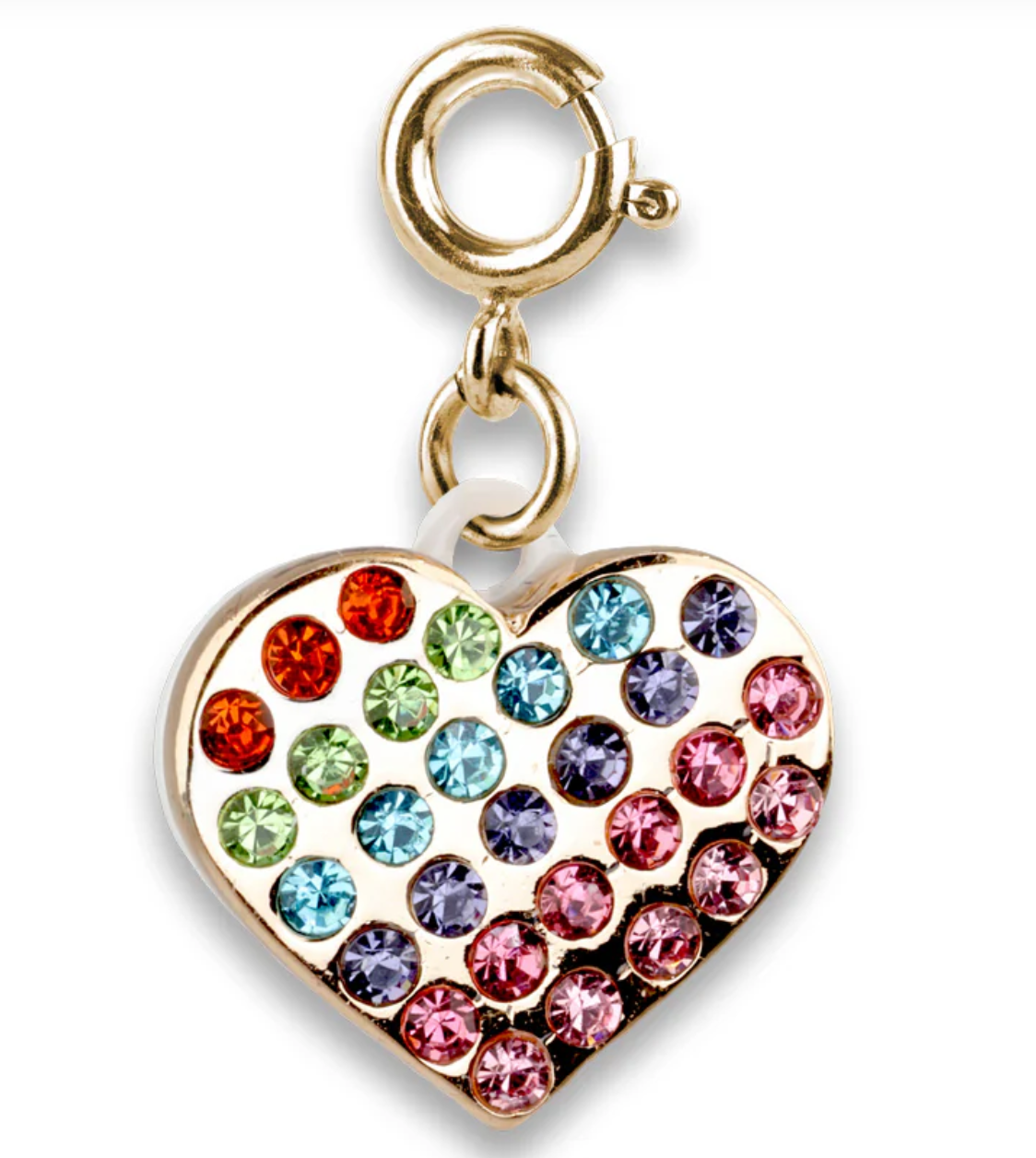Peace, love, and sparkle with this Gold Rainbow Sparkle Heart charm that sparkles bright and twinkles just right!