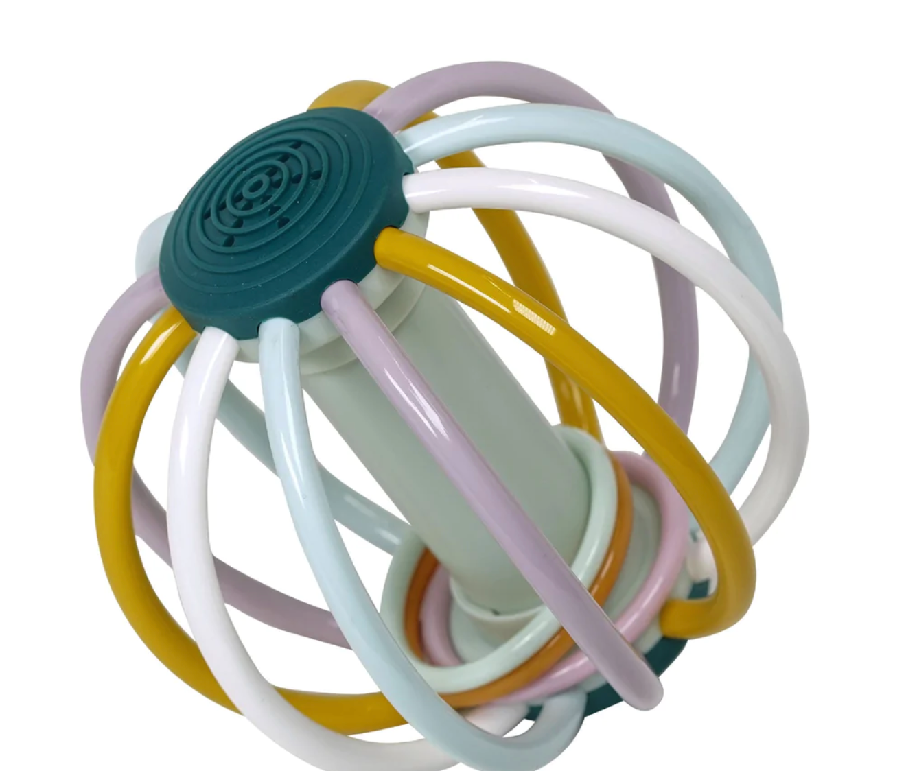 Sure to be a baby favorite for teething, grasping, shaking, and rolling. The Comet Teether features flexible tubes with plastic clacking rings. Plus, every shake reveals a chirping sound. This playful teether toy encourages motor skill development, teething, and cause-and-effect learning.