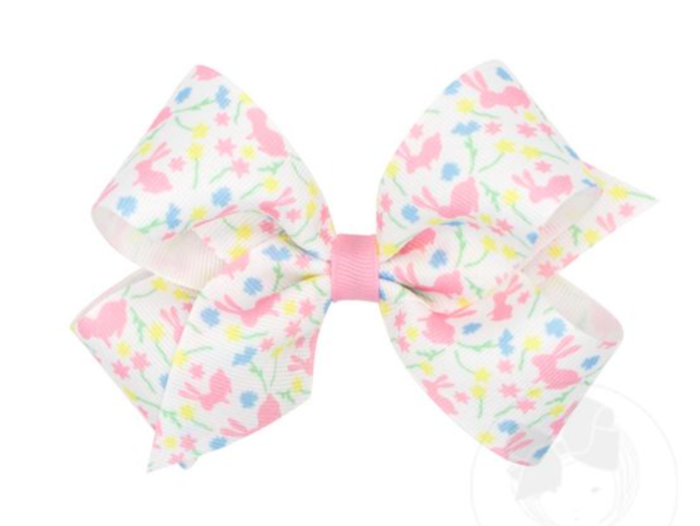 Top off her holiday outfit with a festive grosgrain hair bow for girls featuring adorable Easter prints. This bow is sure to stay in her hair all day with our patented WeeStay™ no-slip hair clip. Also available in king size. Featuring a Wee Ones Exclusive Print!