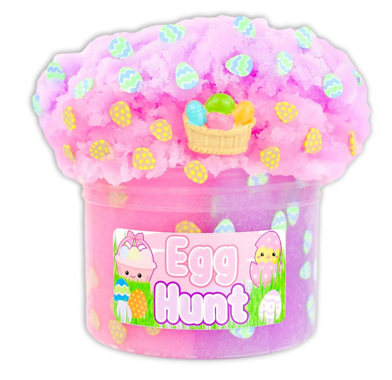 What's not to love about our limited edition Easter slime? Our tantalizingly pastel purple and pink 'ICEE' slime is packed with custom egg fimos and the cutest basket charm - perfect for an egg-cellent egg hunt! Scented lychee-mango berry! Time to get hoppin'!