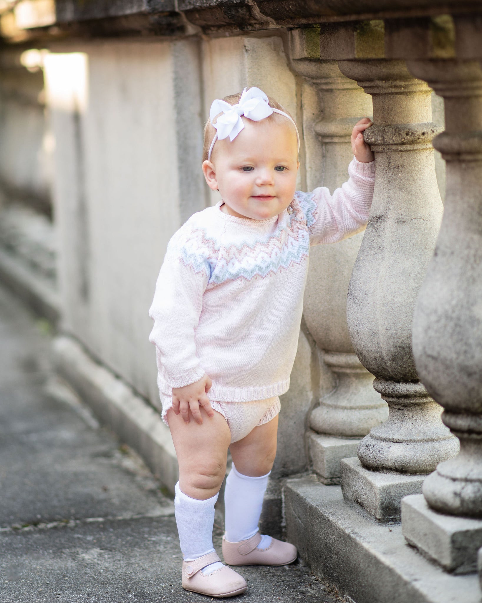 Fair Isle Herringbone Diaper Set Pink
