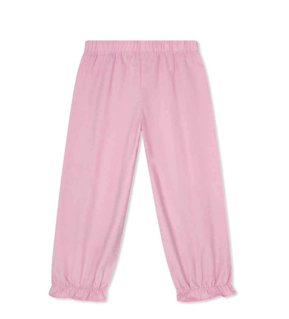 The Gloria Gathered Pant is back this season in woven High Point Pink Corduroy. These pants are closet a basic you will reach for over and over for your little girl.