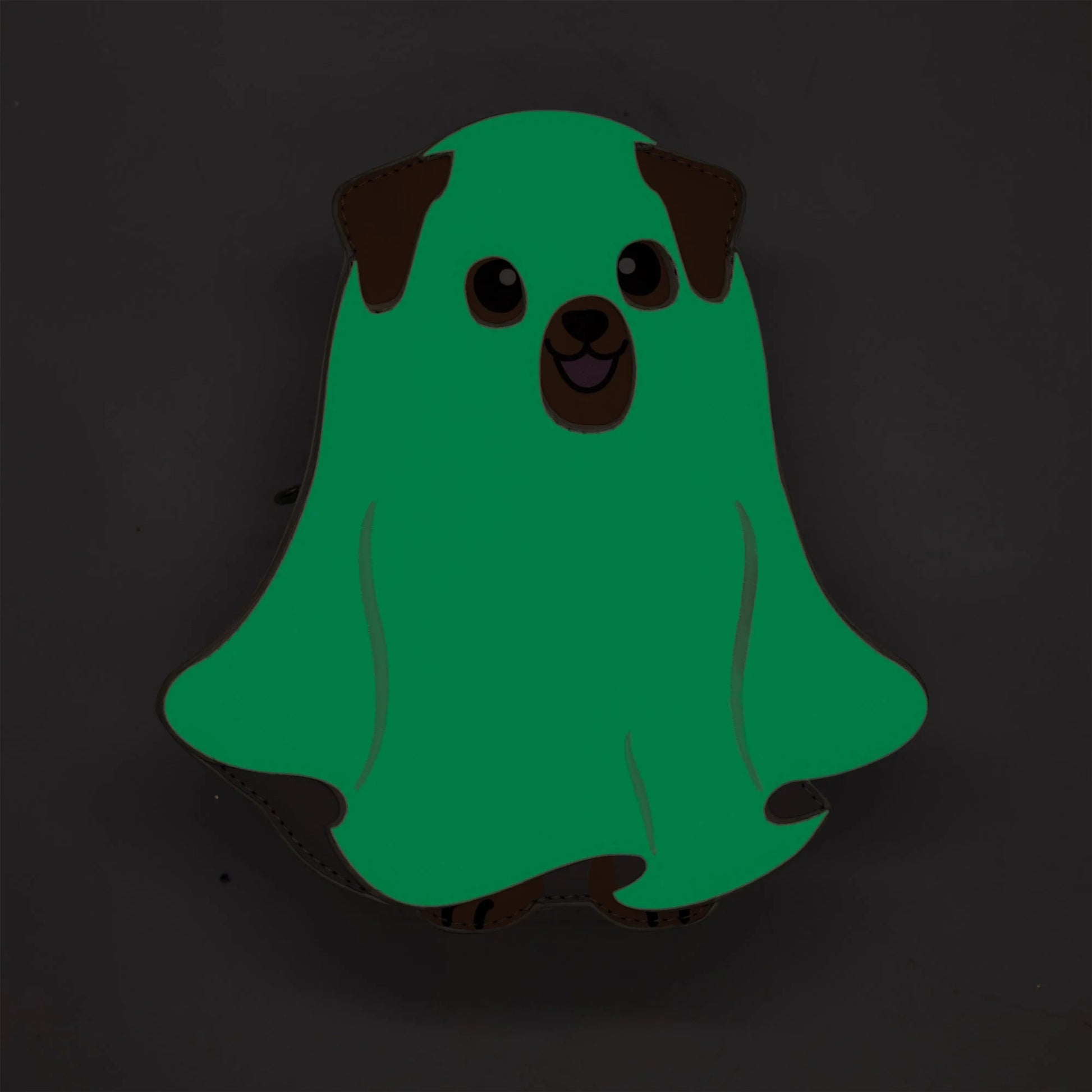 Boo-p! 👻🐶 Don't be scared if this adorable glow-in-the-dark novelty purse follows you home! He just wants a forever home. Comes with an adjustable strap and easy to clean exterior.