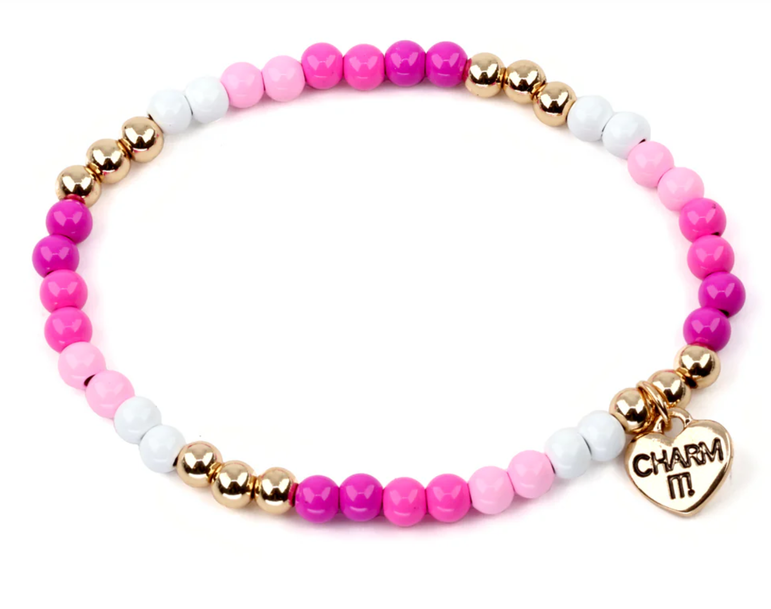 This Gold Pink Stretch Bead Bracelet will make them think pink!