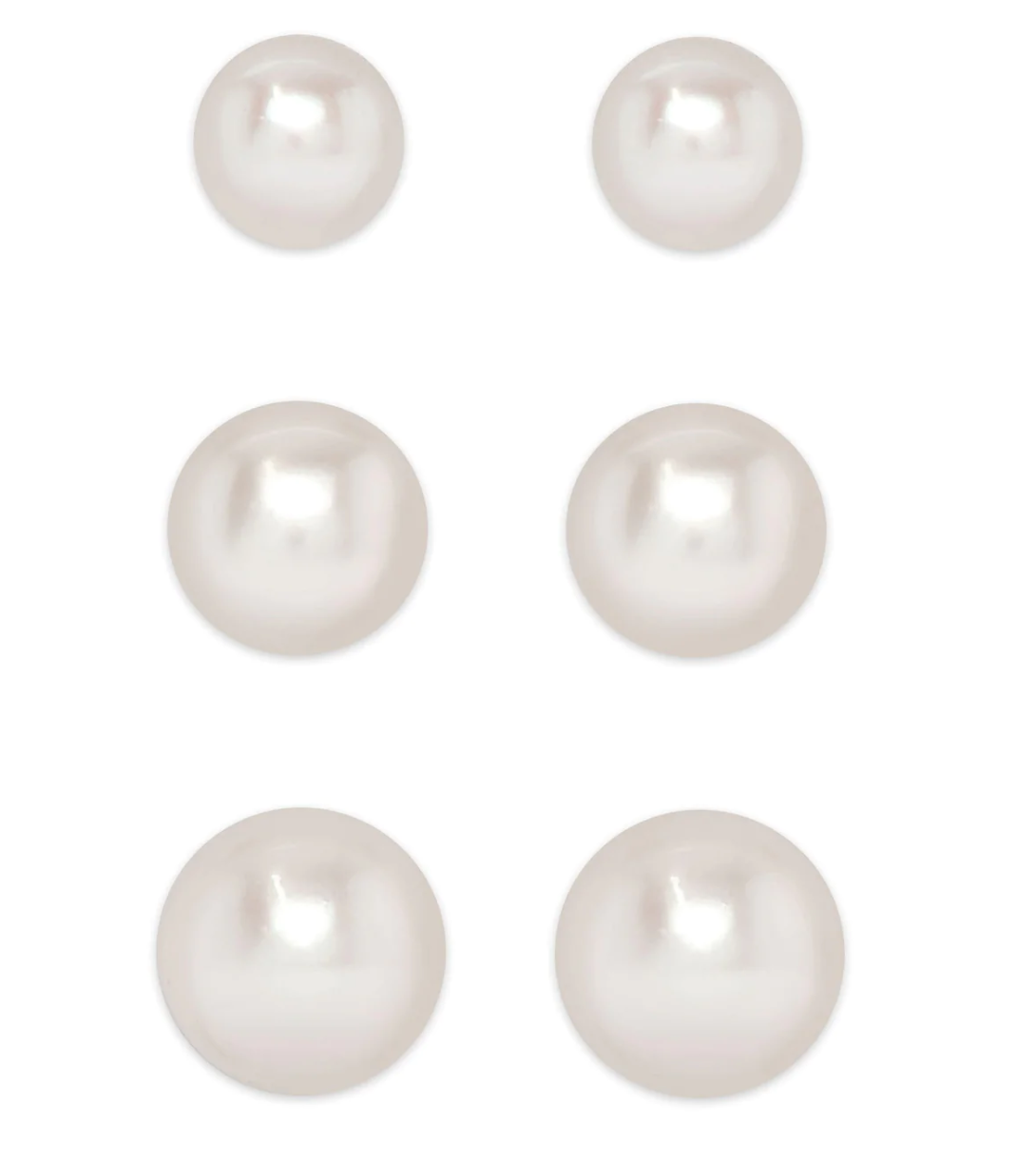 This beautiful 3-pair freshwater pearl studs set is crafted of sterling silver and shines with a high-polish finish. Set features white freshwater pearls in 4, 5, and 6 mm. Earrings secure with friction back clasps.