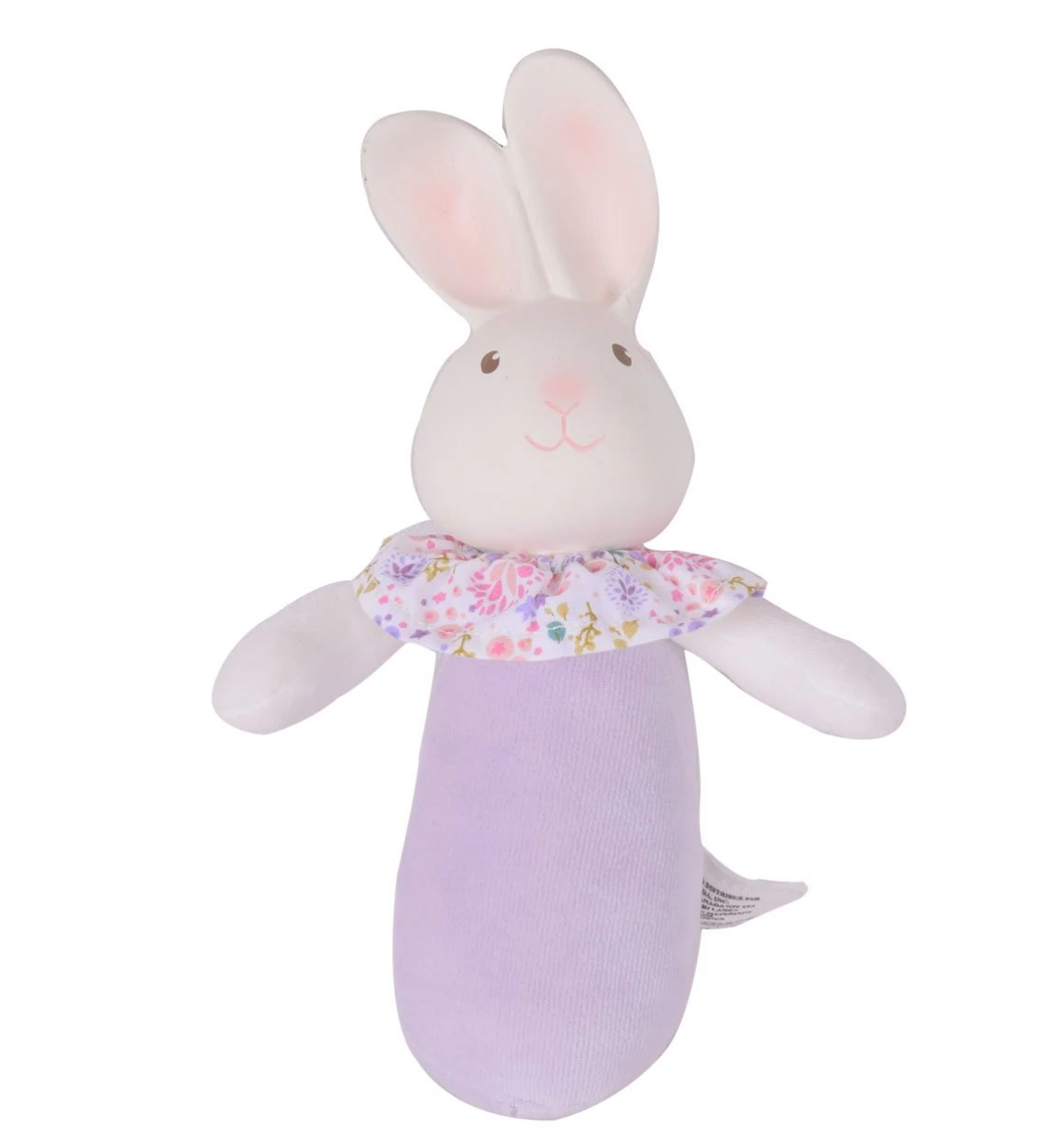 An organic natural rubber head joined with a soft fabric body with squeaker, this Havah the Bunny is not only easy for little hands to grip, it combines the benefits of sound toys, with a comforting character, with a toy ideal for teething babies.