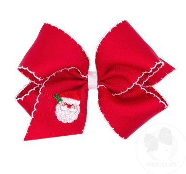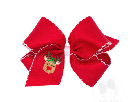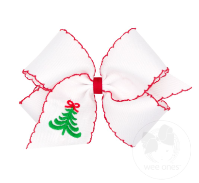 King Grosgrain Hair Bow with Moonstitch Edge and Christmas Embroidery