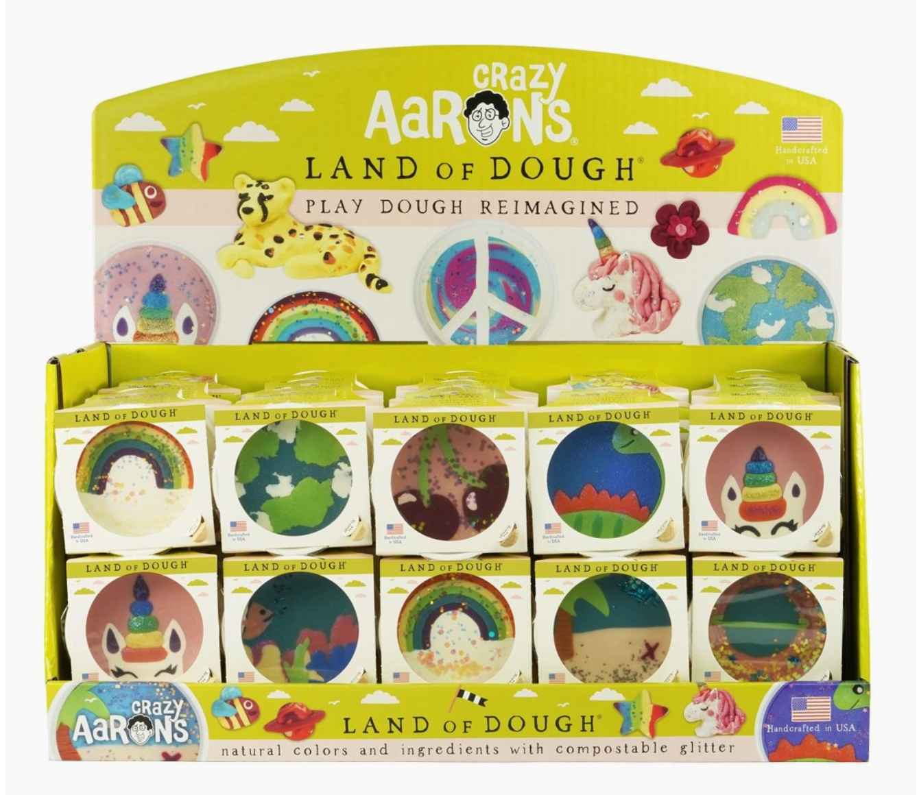 Known for creating Thinking Putty, Crazy Aaron’s has reinvented a childhood classic. Land of Dough play dough is handmade on Main Street, USA and carefully crafted from natural ingredients, it’s simply the most unique, wonderful, and sustainable dough on the planet.