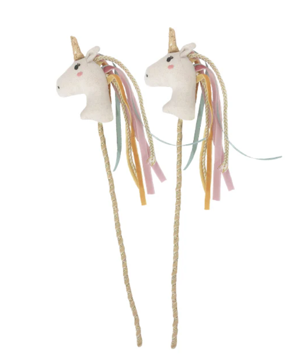 Spark their imagination with our beautiful Unicorn Magic wand. Decorated with gold ribbon handle, it has a linen unicorn head, with gold horn and multi - color and ribbon mane. Ages 3+