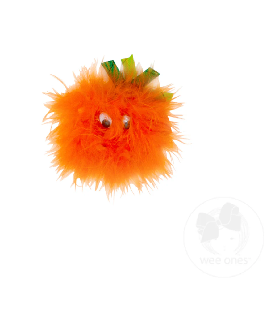 Meet her new Halloween sidekick! This fluffy pumpkin marabou hair clip features bright orange feathers, green ribbon “leaves,” and silly googly eyes that are ready for every spooky adventure. Whether she’s headed to the pumpkin patch, a costume party, or trick-or-treating, this cheerful clip adds a fun pop of personality. Sure to stay in her hair all day with our patented WeeStay™ no-slip hair clip.