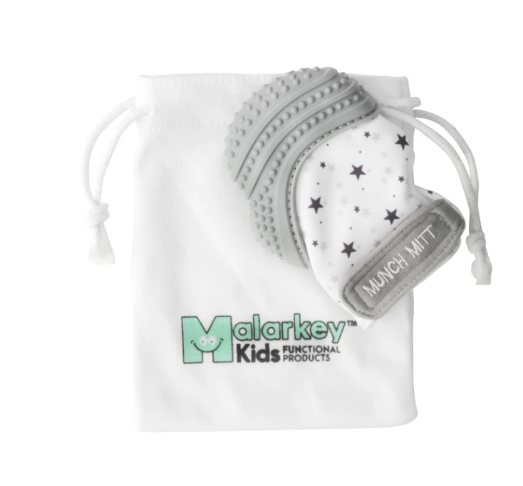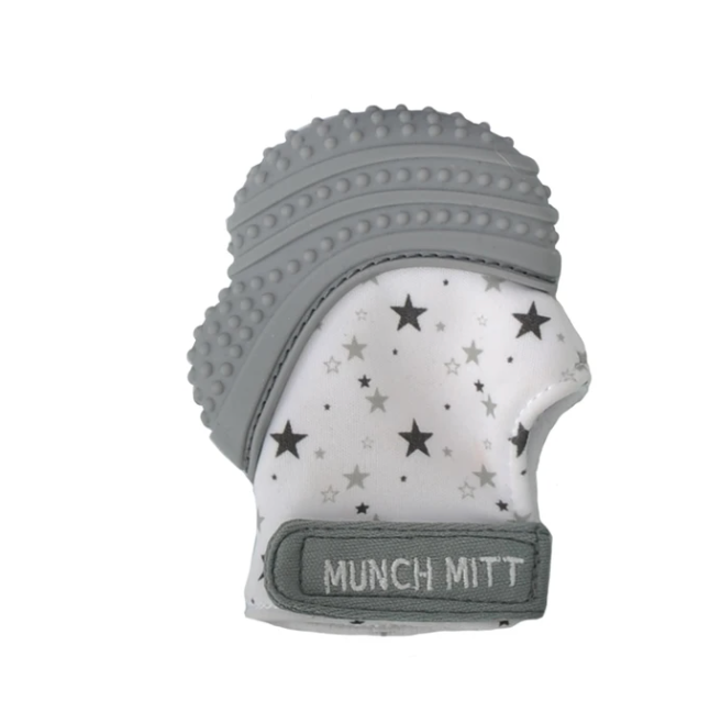 The Munch Mitt is the original, mom-created teething mitten that babies love. A ‘handy’ solution for infants of all ages and sizes, the Munch Mitt provides relief from teething pain in a safe, easy-to-clean product that goes wherever they do. Suggested age range 3-7 months.