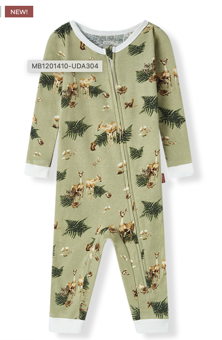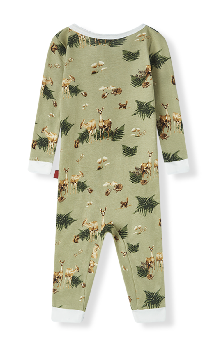 BaOur extra soft organic cotton Zipper Pajama in the Forest Party print blurs the lines between sleepy time, playtime, and cuddle time.