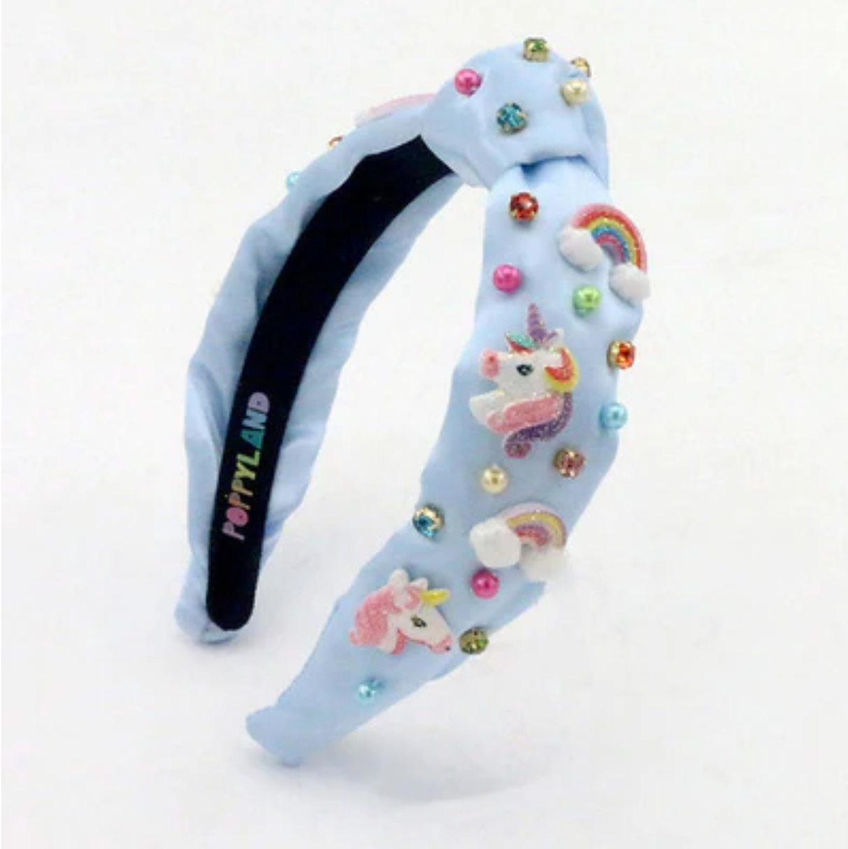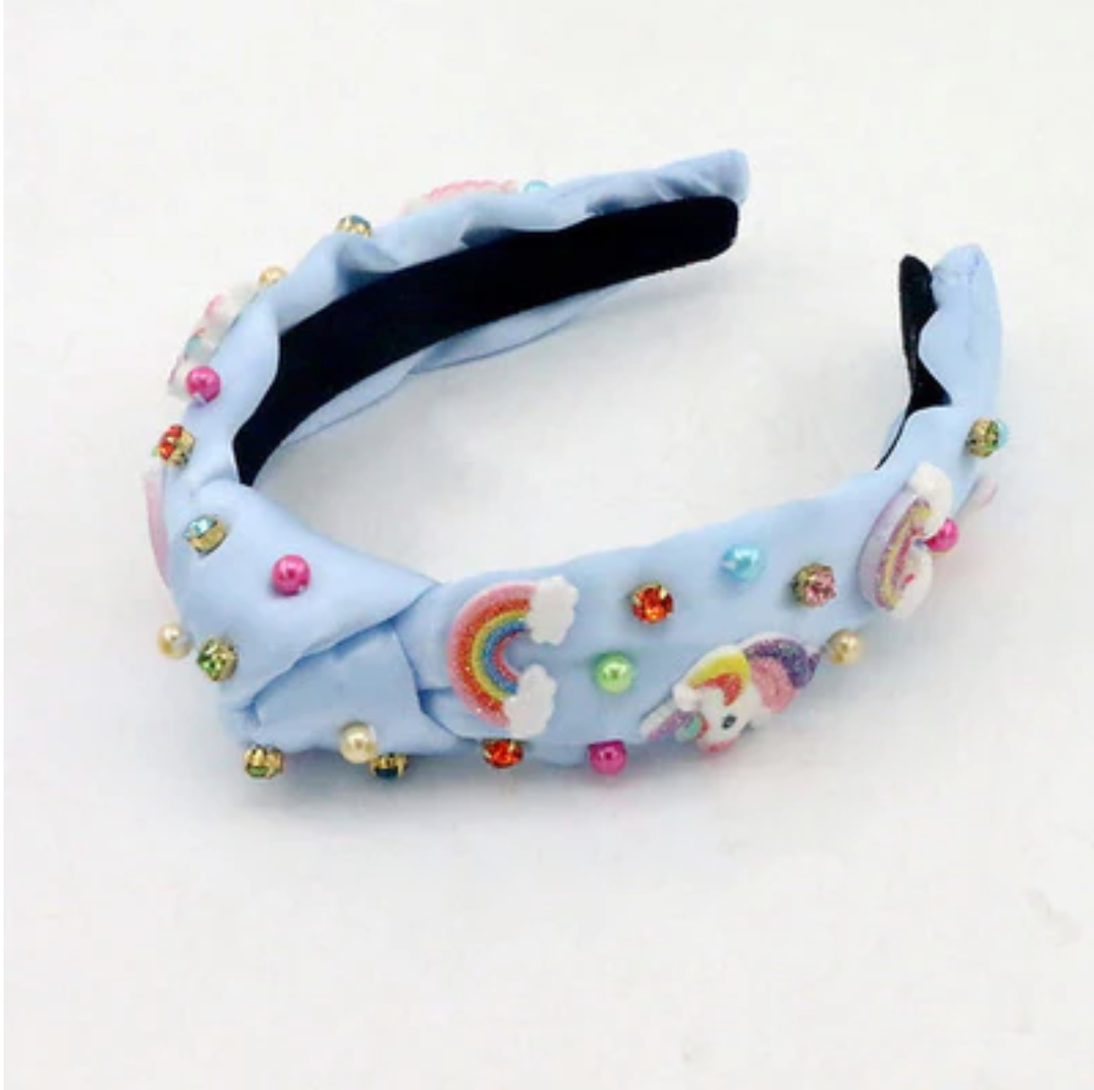 Somewhere over the rainbow was this most perfect headband! Adorned with glittered rainbows and unicorns, this headband is certain to become a daily favorite!