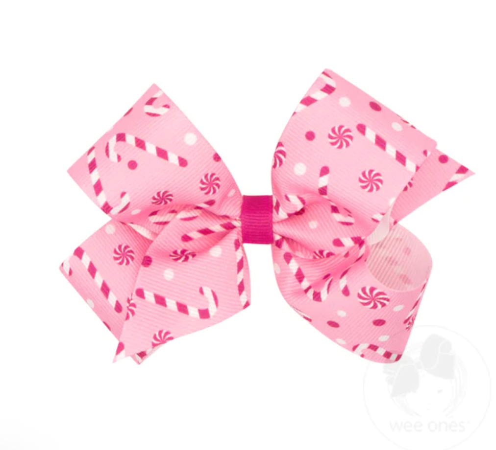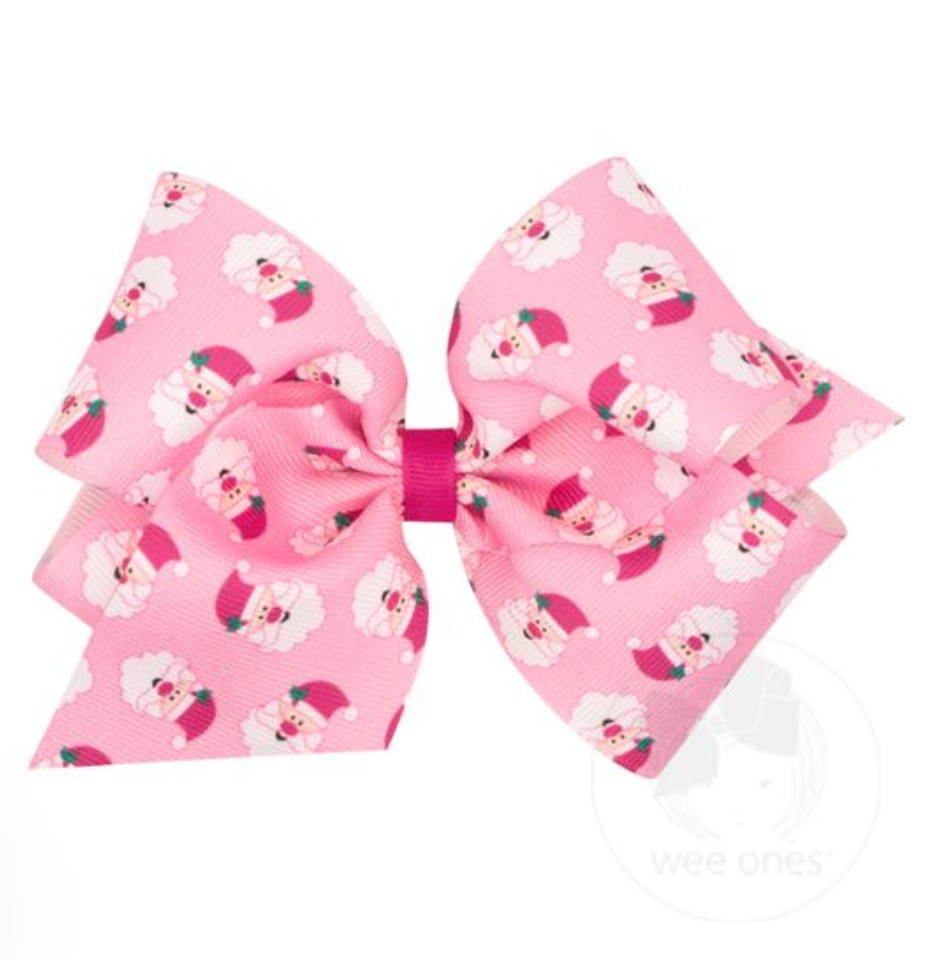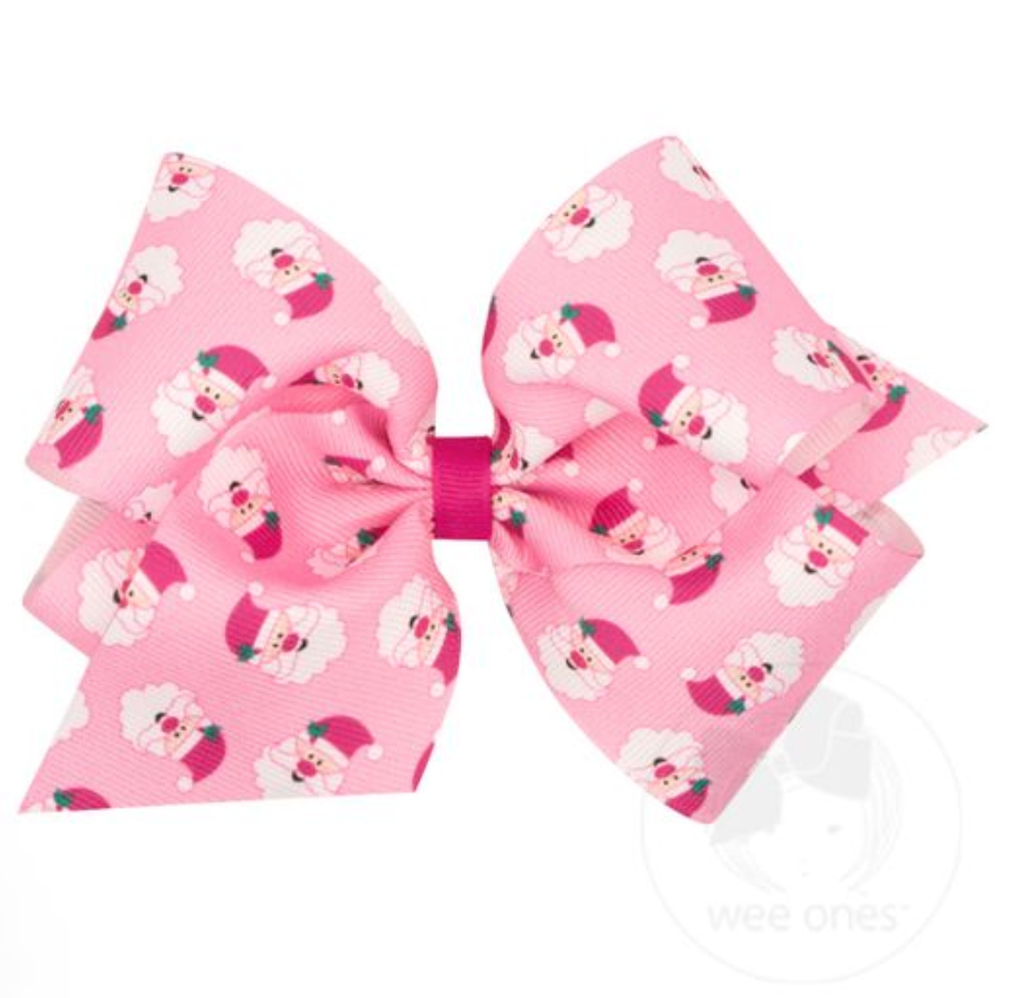 Add some extra holiday cheer to your little one’s look with these adorable Holiday-themed Printed Grosgrain Hair Bows! Featuring festive festive Christmas and holiday graphics, these pink printed grosgrain hair-ties will make your cutie look even cuter. Ho ho have a holly, jolly Christmas!. Sure to stay in her hair all day with our patented WeeStay™ no-slip hair clip.