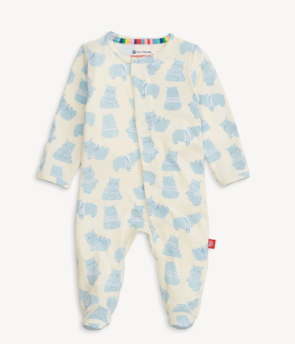 Our modal Magnetic Footie, designed with magnetic closures, is a quick and quiet lifesaver for all-day and middle-of-the-night diaper changes—that's up to 12 times a day (!). Made from sustainable modal, it's a silky-soft and temperature-regulating sleeper to keep your little one comfy from head to toe.
