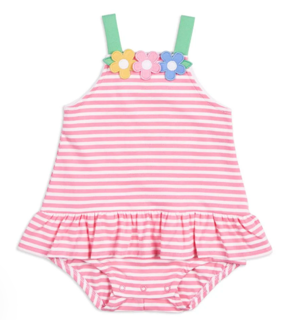 Stripe Knit Romper with Flowers