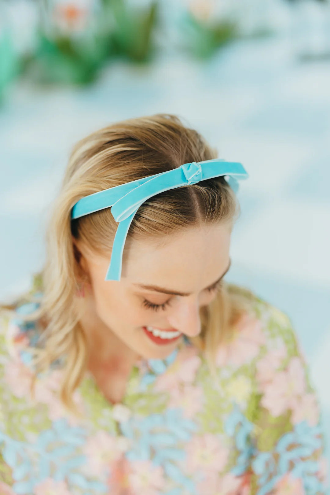- Thin Pastel Blue Ribbon Headband Tied in a Perfect Bow