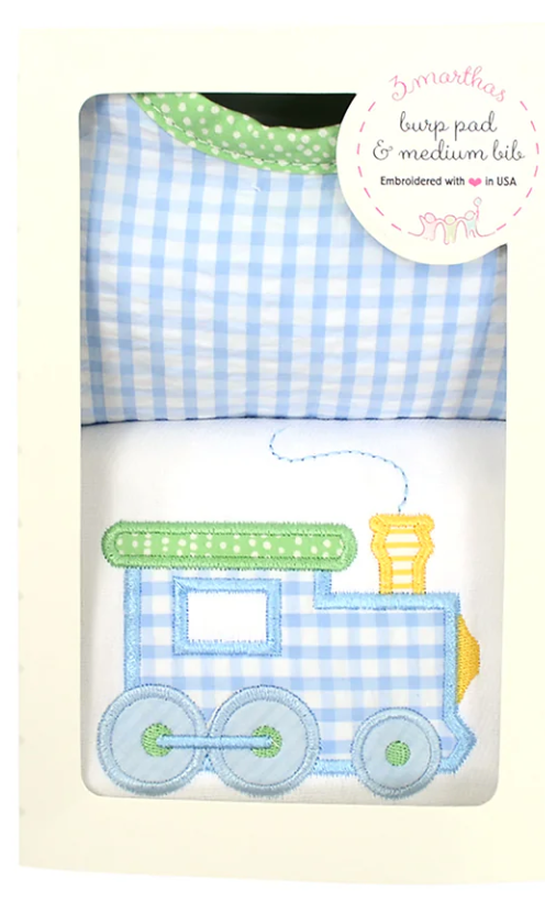 Our best-selling gift set features a super absorbent appliqued burp cloth and a coordinating fabric bib that is backed in 100% thick cotton terry. It comes beautifully packaged in a signature gift box, making it a great gift-on-the-go!