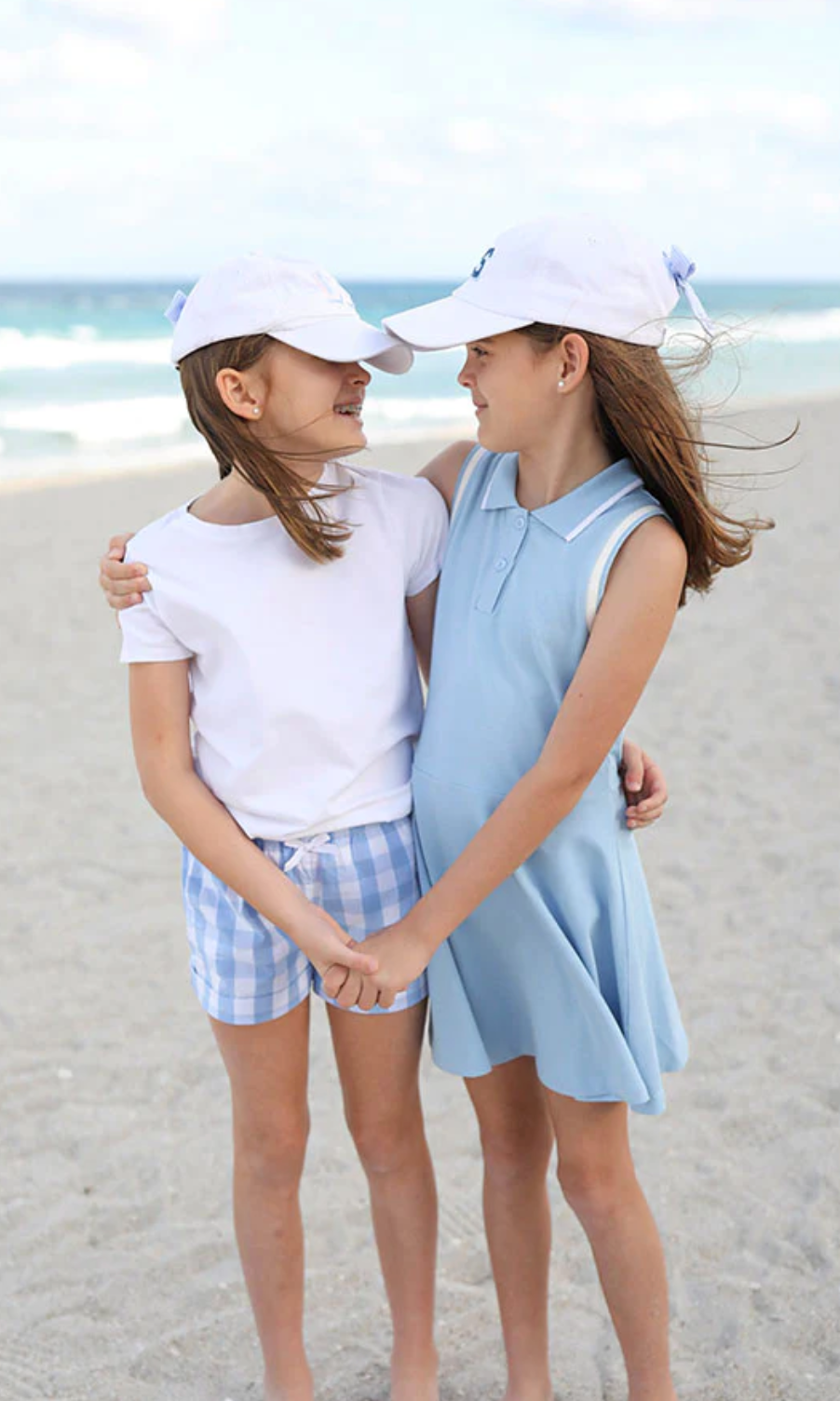 From the court to the green and everywhere in between, our Winnie White Hat is a cute and crisp new take on sun-protecting sportswear your little girl is sure to never take off. A Seersucker Blue Bow in back, it will give her a graceful new topper that’s all her own, with front and center monogram embroidery.