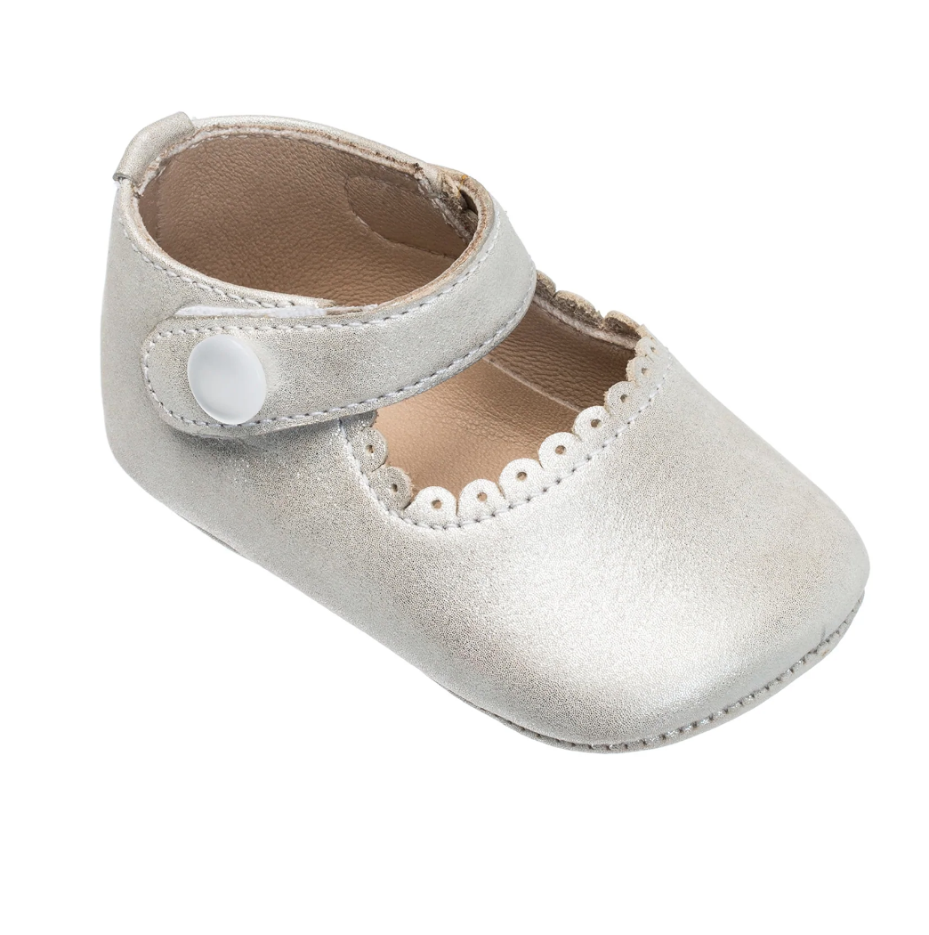 It's never too early to wear a Mary Jane, and Elephantito's Crib Mary Janes are up to the task. The soft scalloped collar and faux-buttoned velcro strap, give elegance and wearability to this favorite of ours. All Elephantito shoes are handmade with natural materials, giving a one of a kind feeling to our designs.