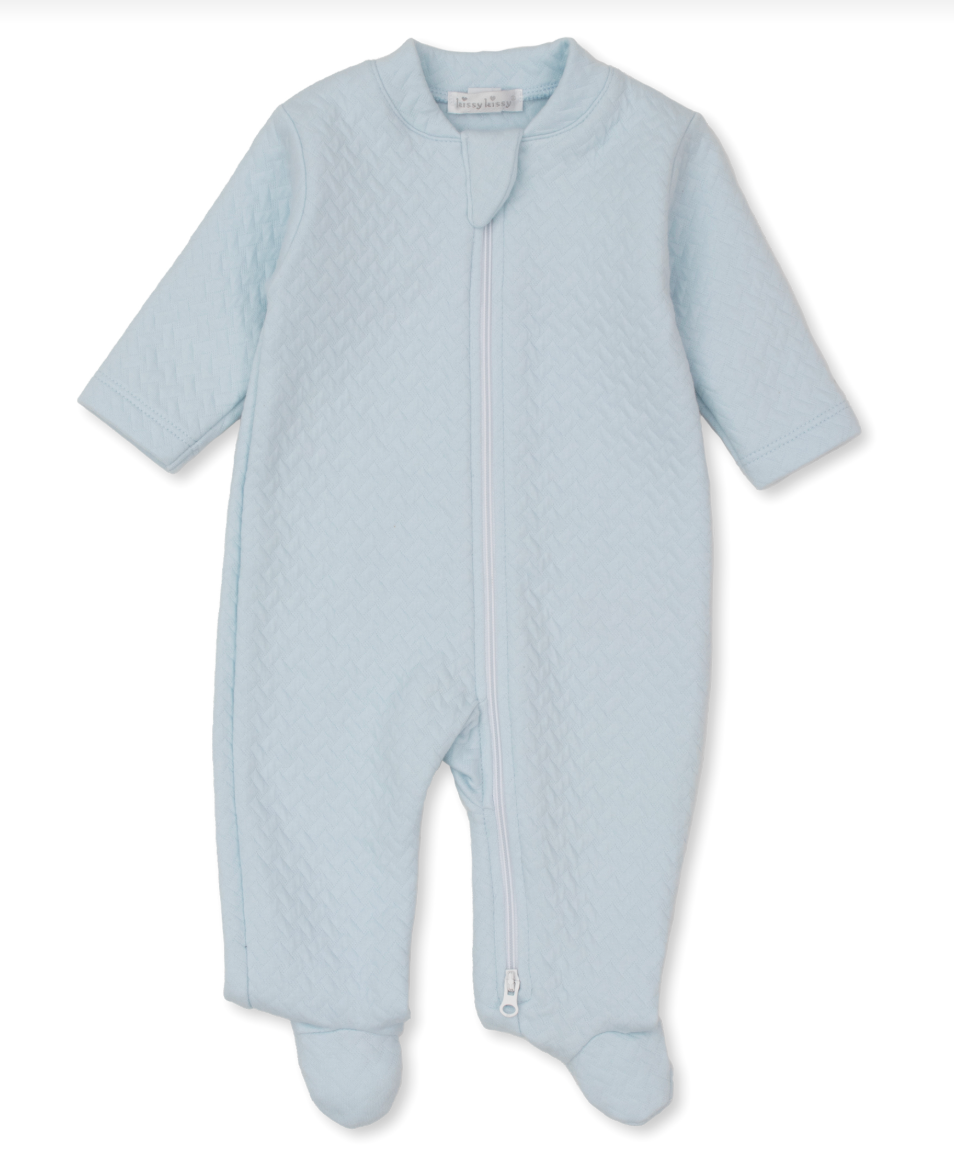 Classic Jacquard Footie with Zipper Light Blue