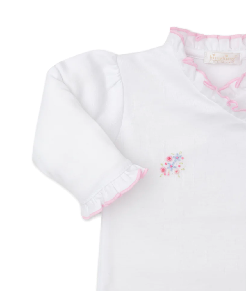 - The softest, coziest footie from our SCE Floral Fantasy Collection for your baby. It is crafted from the finest Peruvian cotton, with delicate hand embroidery and a timeless design.