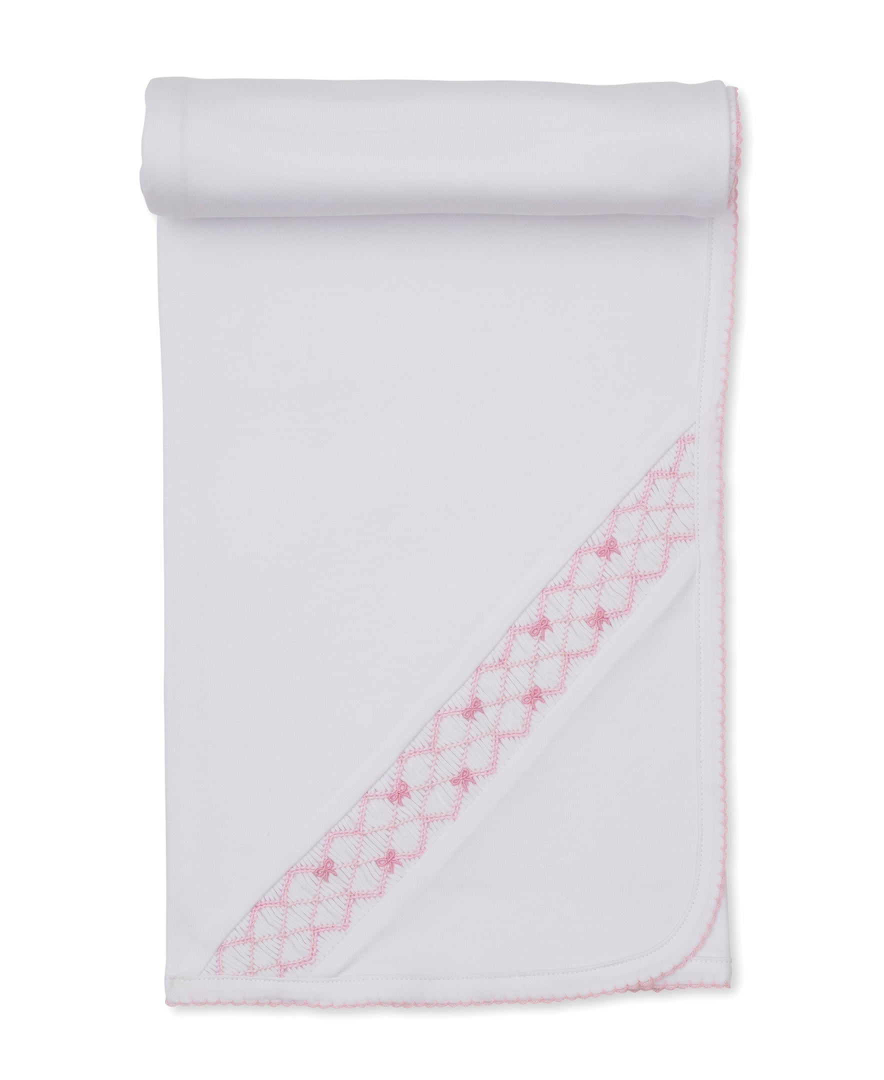 Hand Embroidered Smocked Bows White Blanket