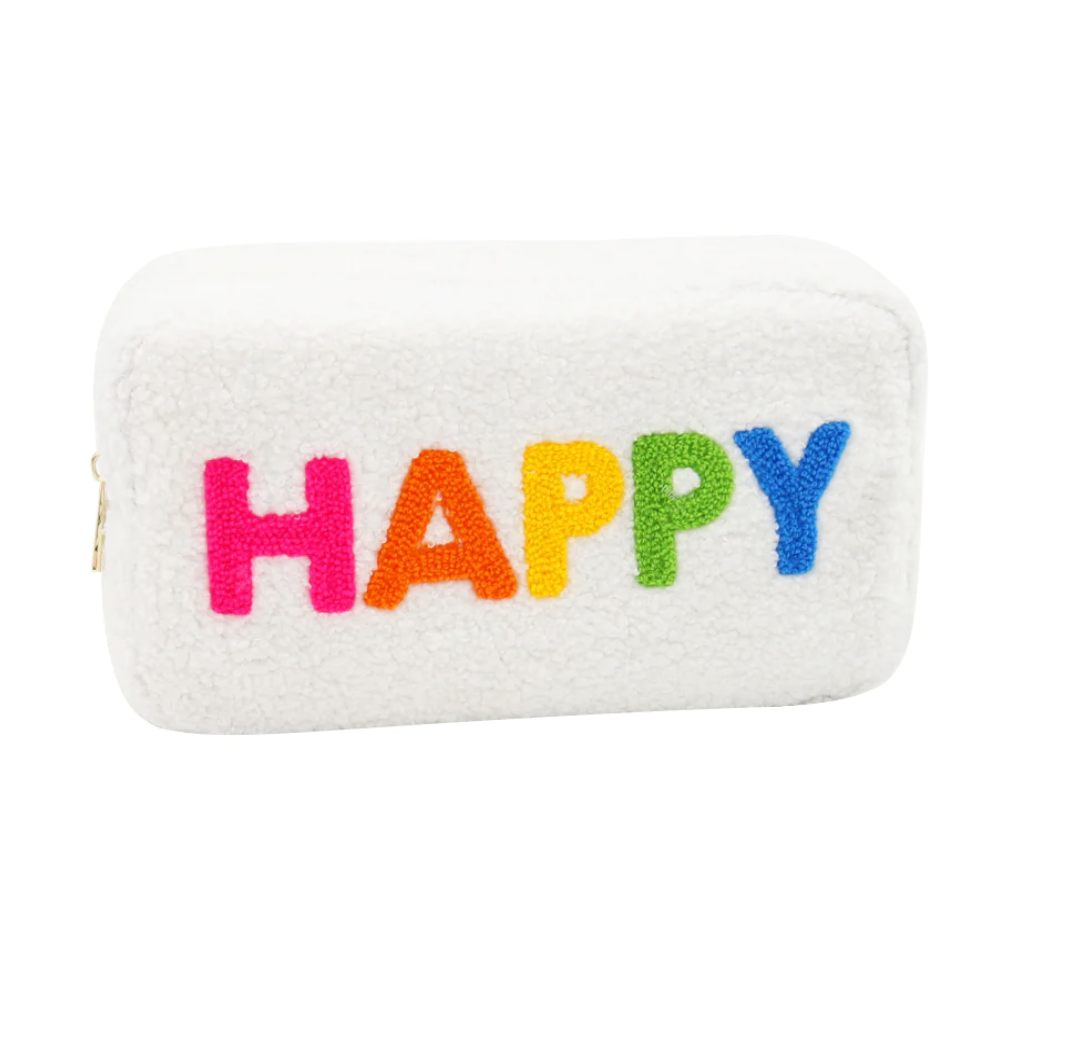 This is a teddy fur bag with a gold zipper. It measures 10" x 5.5" x 3.5".