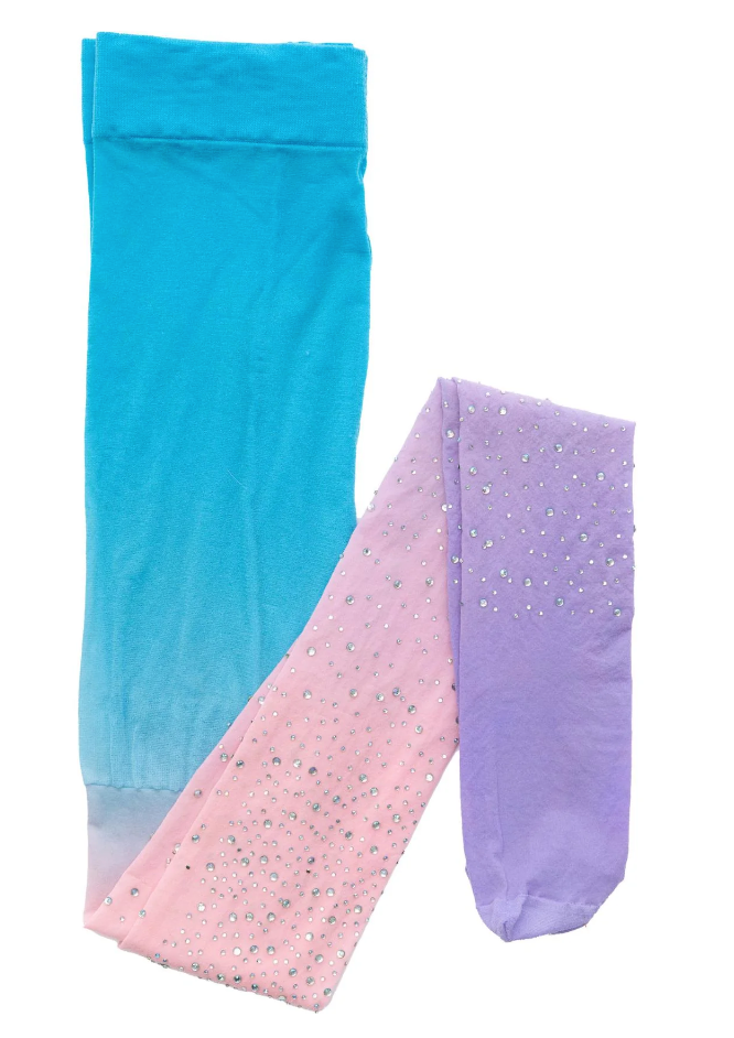 These rhinestone tights are a fun and flirty addition to any outfit. They are perfect for wearing with a casual dress or tutu. These tights come in a box and are made to fit children ages 3-8. The tights are three colors - lilac, pink, and blue -and the legs are covered in rhinestones. These tights are perfect for any kid who loves to add a little extra sparkle! They are the perfect accessory for any outfit.