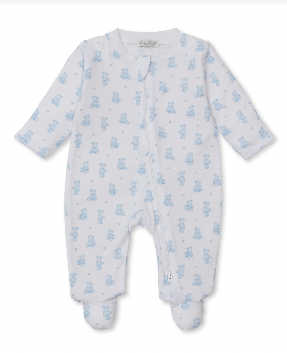 Teddy Bear Time Footie with Zipper Light Blue