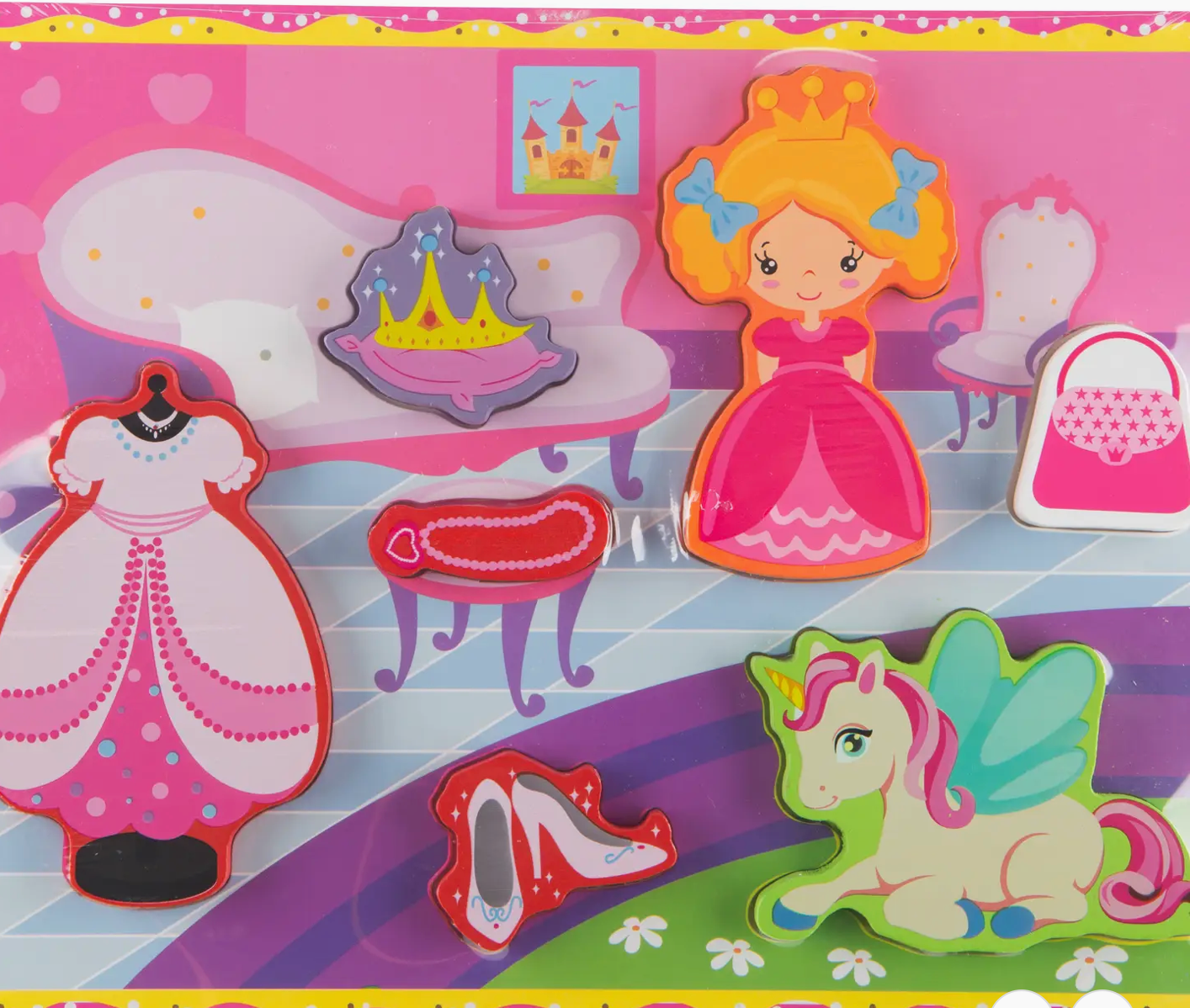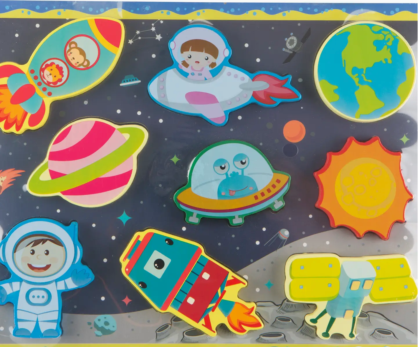 Brightly colored, beautifully crafted, and painted wooden puzzles help develop fine motor skills and promote learning. These puzzles come shrink-wrapped and tied with a ribbon and a gift tag, ready for gifting. Each puzzle measures 12" x 9". Intended for ages 3+.
